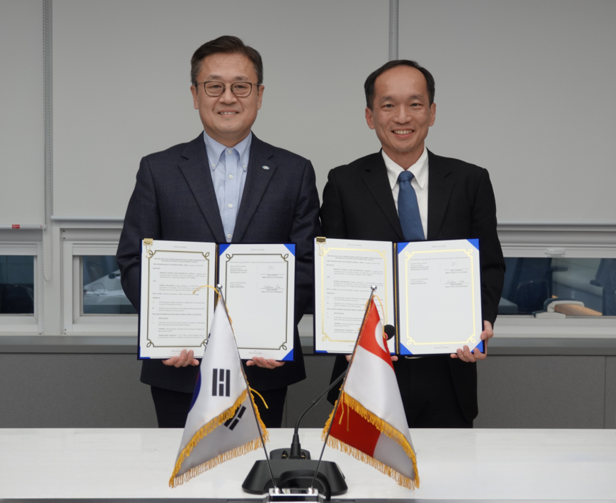 (From left) Executive Vice President of KR, Mr Kim Daeheon and Director Naval Systems of DSTA, Mr Ong Li Koon